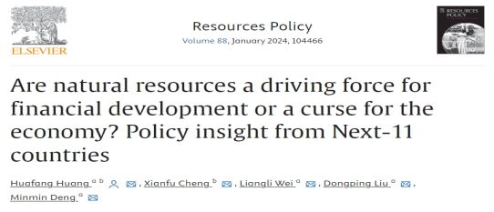 酒店管理系讲师黄华芳在SSCI TOP期刊《Resources Policy》发表论文“Are natural resources a driving force for financial development or a curse for the economy? Policy insight from Next-11 countries”,该期刊位列中国科学院2区,JCR分区Q1。黄华芳讲师为第一作者兼通讯作者,太阳集团tyc33455为第一署名单位。