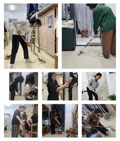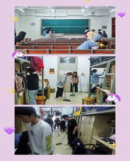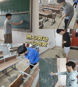 积极分子一组和二组打扫铭传楼B区教室及卫生区各个角落,抽屉里的垃圾,教室墙面上小纸片和杂物,整理讲台上的粉尘杂物,擦洗黑板。把图书馆的书摆放整齐,整个劳动过程中,学员们本着“团结互助,爱校如家”的精神,人人动手,积极合作不怕累、不怕脏,干得热火朝天。