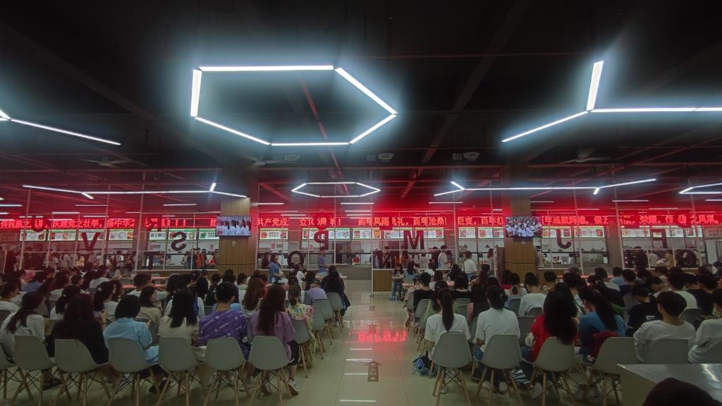滨湖校区食堂集中观看现场