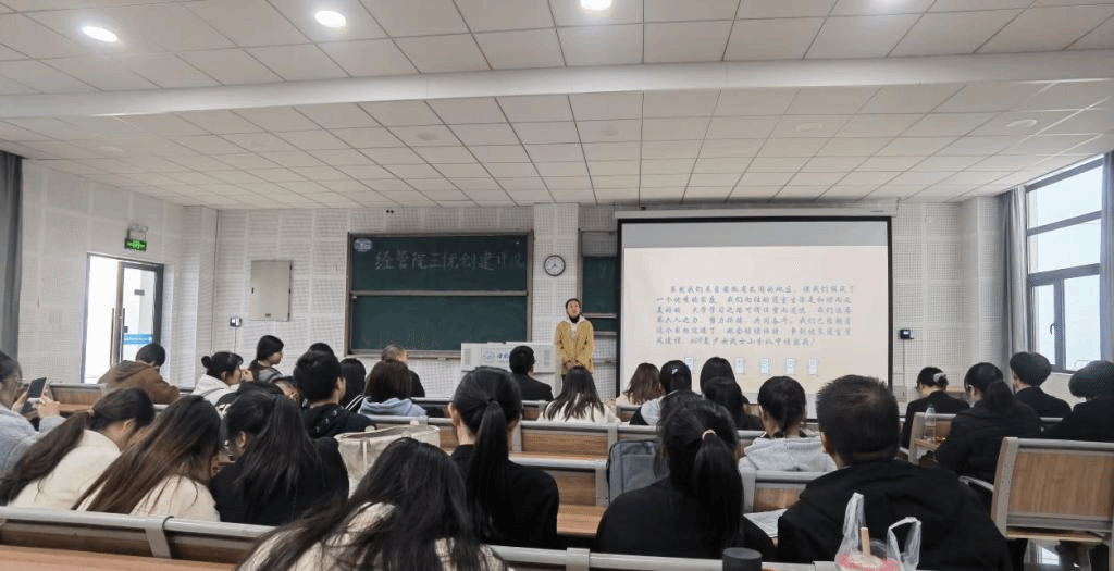 为贯彻落实“优美环境、优良秩序、优质服务”的三优建设工作,进一步提高学风建设水平,促进学生“自律、自强、自立”向上发展。2021年11月10日下午14:20,滨湖校区博学楼D101教室,我院开展了2021年“三优创建”优良学风班级和优良学风宿舍的评选活动。本次活动由经管院副书记陶敏和经管院张威、杜娇、马悦、蒋诗伟、王瑞瑞五位辅导员老师担任评委。参与本次评选会的还有经管院2019级、2020级及2021级的各班班委和寝室长代表。