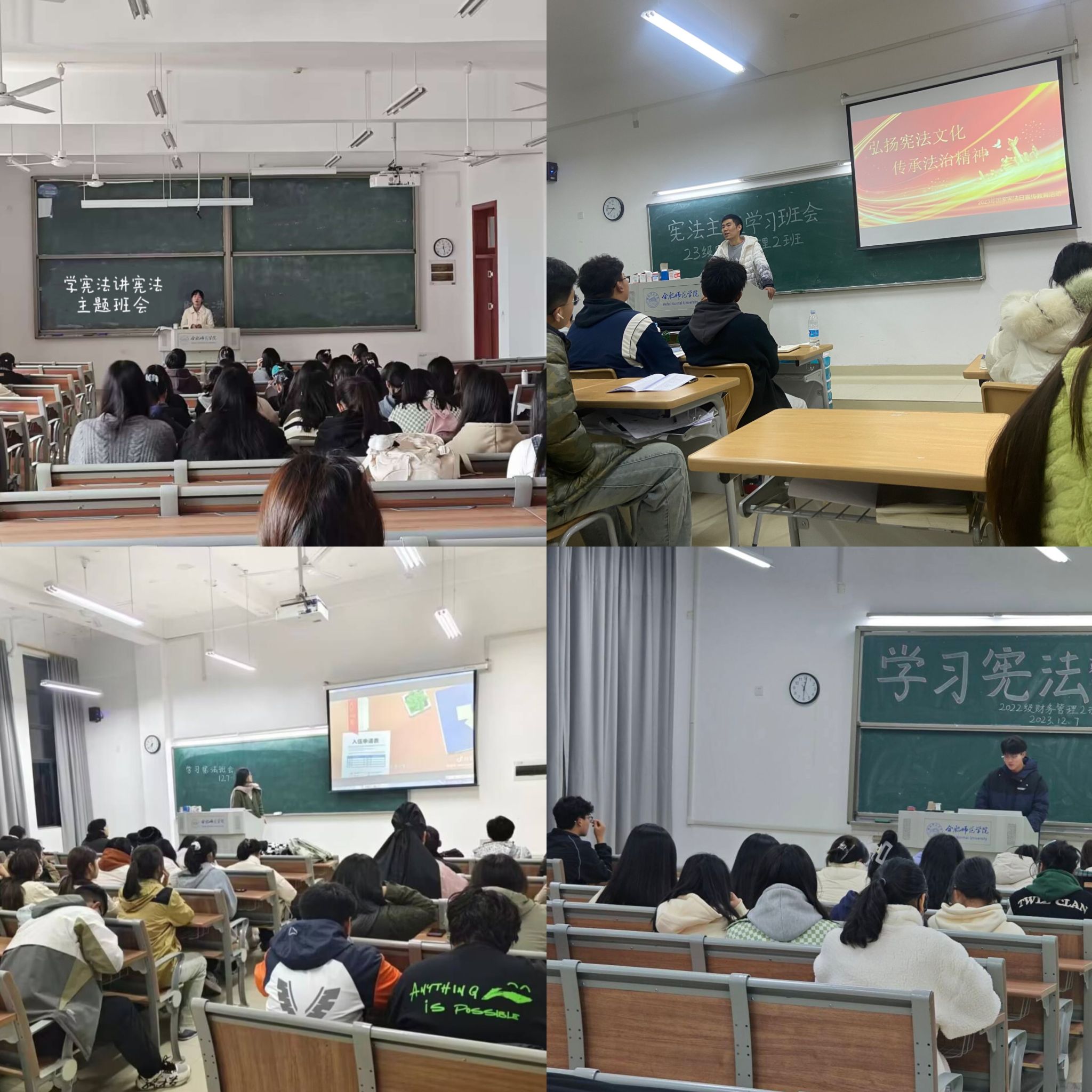 本网讯 今年12月4日是第十个国家宪法日,也是我国现行宪法公布施行四十一周年。2023年全国“宪法宣传周”宣传活动的主题为“大力弘扬宪法精神,建设社会主义法治文化”。为进一步增强大学生的法治意识和遵纪守法的自觉性,维护宪法权威。12月3-8日,太阳集团tyc33455各班级陆续开展“学宪法,讲宪法”主题班会。