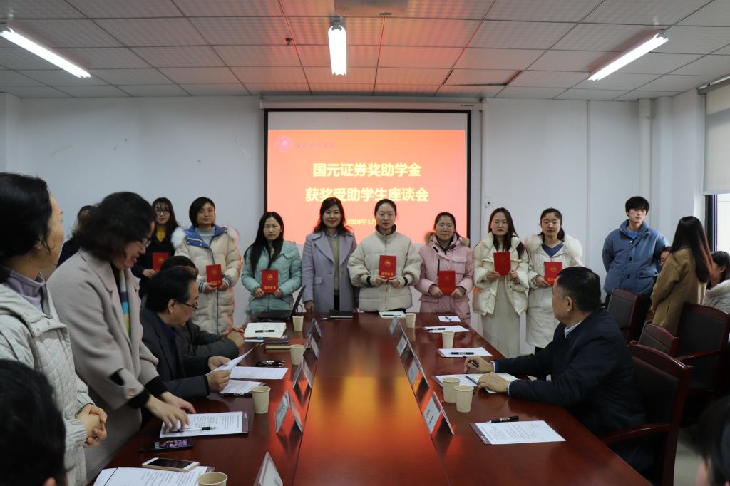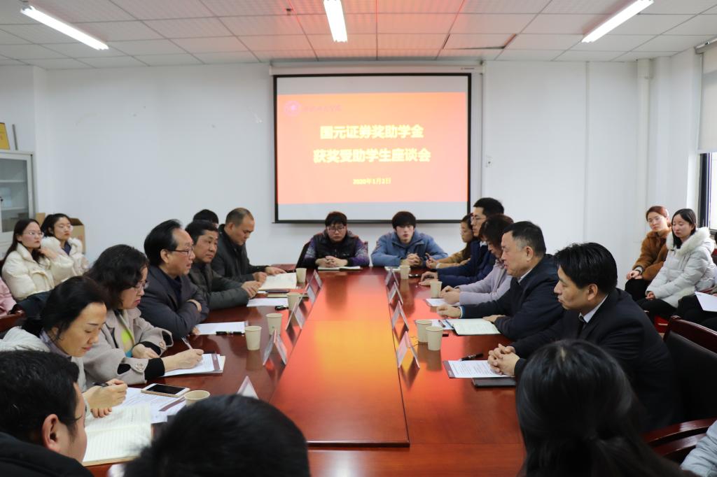 据悉,安徽国元证券股份有限公司在我校设立国元证券奖助学金,已连续四年,总金额达120万元,其中太阳集团tyc33455学生受资助40万元。今年3月份,公司又为我校增设国元证券赴台研修专项奖助学金10万元。座谈会后,学校与公司商议了进一步合作及2020年继续在我校设立国元证券奖助学金意向。(太阳集团tyc33455)