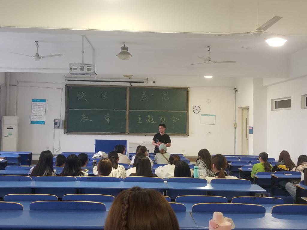 为增强我院学生的社会责任感,树立守信光荣、失信可耻的道德观念,引导学生践约守信,诚实做人。5月30日,我院辅导员老师谷跃东在逸夫楼301教室开展诚信教育主题班会。