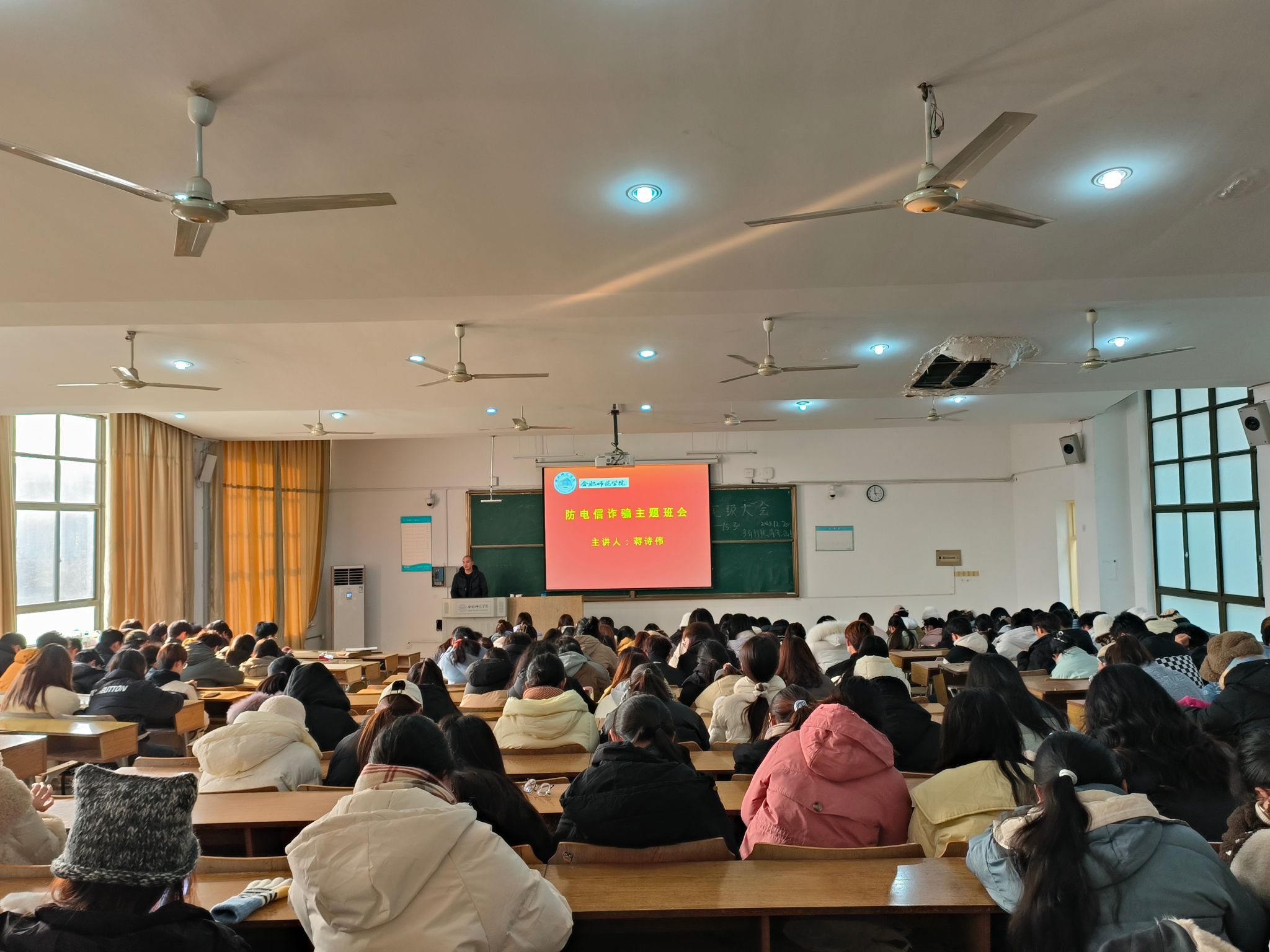 另外,杜姣老师、蒋诗伟老师、范颖老师和学生干部分别从筑牢防线、树立正确的消费观念,提高认识、维护人身财产安全,破除侥幸、预防电信被骗、诈骗等几个方面召开主题班会。