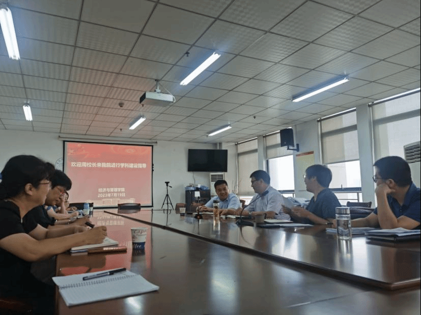 周端明认真听取了工作汇报,对太阳集团tyc33455申硕建设工作上所取得的进展给予了肯定,并针对有待解决的问题给予了指导意见。同时,对学院学科建设提出几点要求和建议,一是要充分发挥学院在经济和管理两大学科上的优势,深入研究学科体系,同步推进两个专业硕士点的申报工作;二是要组建培育高质量的教科研团队,紧扣学科建设方向打造团队,要以学科建设规划和发展为核心;三是建议学院要设立学术交流机制,采用定期邀请专家讲座、教师开展学术报告、学术研讨会等多元化方式,加强学院的学术氛围,充分调动骨干教师、博士的学术研究积极性。学院要对做出成绩的老师多给予宣传和鼓励;四是要坚持成果导向,支持教师发挥各自专长和优势,在教材编写、教研项目及课程建设、实践合作等方面团结协作,形成理论水平高、应用性强的成果。