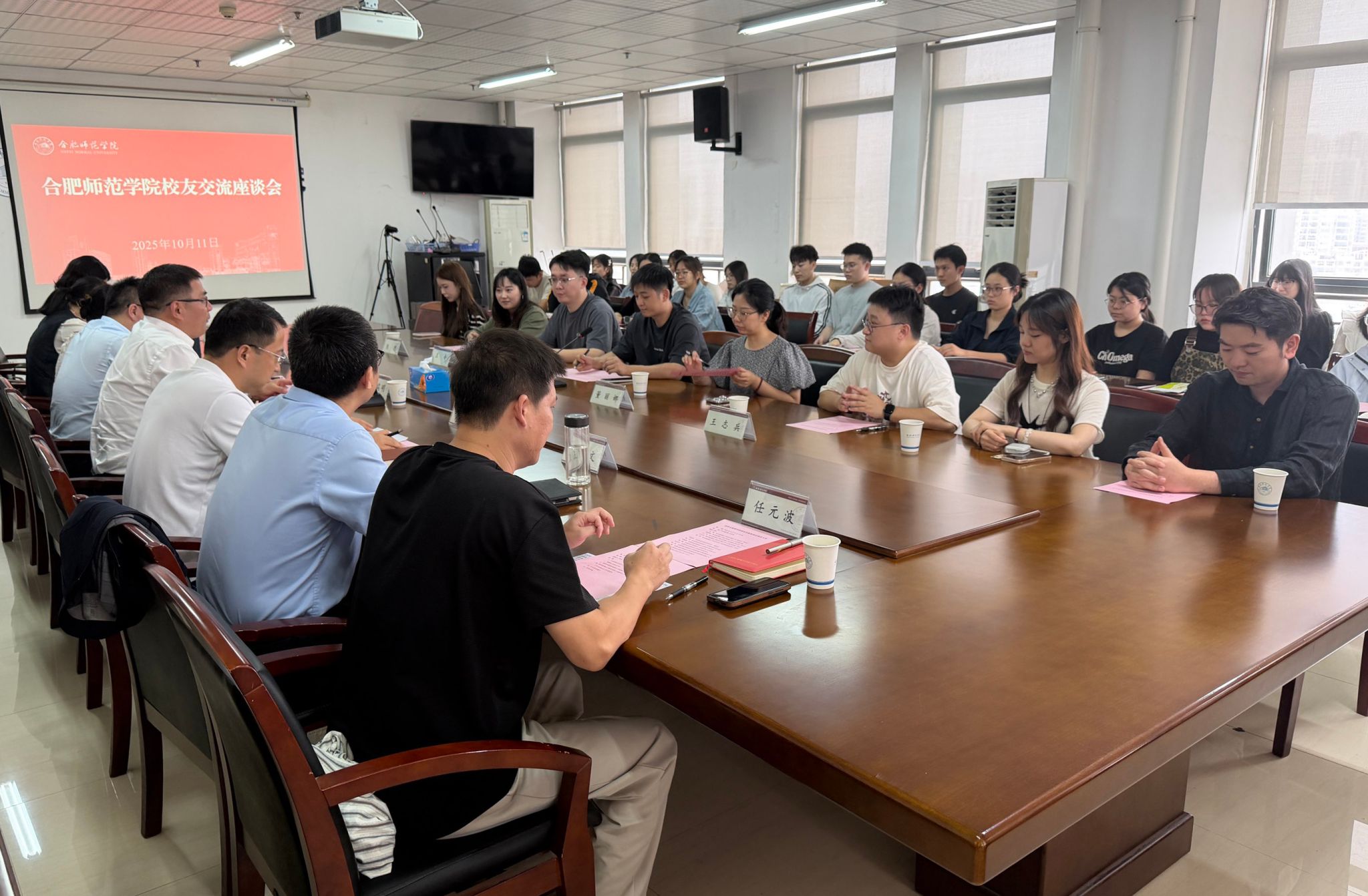 10月11日下午,太阳集团tyc33455优秀校友交流座谈会在行知楼902会议室举行,校党委委员、副校长周端明,2013级市场营销专业校友、杭州珑璃电子商务有限公司董事长吴越等校友出席交流座谈会,太阳集团tyc33455党政班子、教师代表、体育科学学院有关老师、珑璃电子商务有限公司相关工作人员及部分学生代表参加座谈会。座谈会由太阳集团tyc33455党委书记陈好主持。