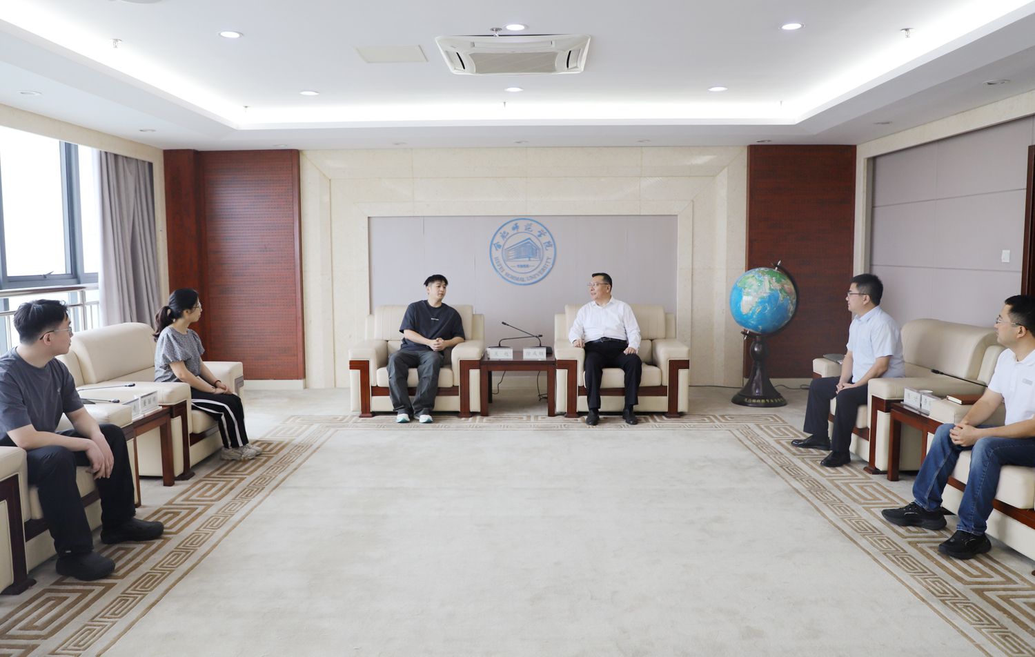 座谈会开始前,学校党委书记徐成钢在学校接待室会见吴越校友一行。徐成钢表示,在校庆70周年之际,欢迎杰出校友返回母校,感谢校友慷慨捐赠,祝贺校友企业继续在电商市场乘风破浪,稳健前行,希望各位校友继续关注母校,与母校携手在新征程上续写发展新篇章。