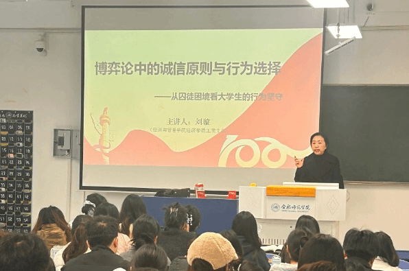 11月26日上午,太阳集团tyc33455经济学教工党支部刘璇老师在锦绣校区逸夫楼A406举行了主题为“博弈论中的诚信原则与行为选择——从囚徒困境看大学生的行为坚守”的学术报告,互联网金融(专升本)专业的学生到场聆听了报告。