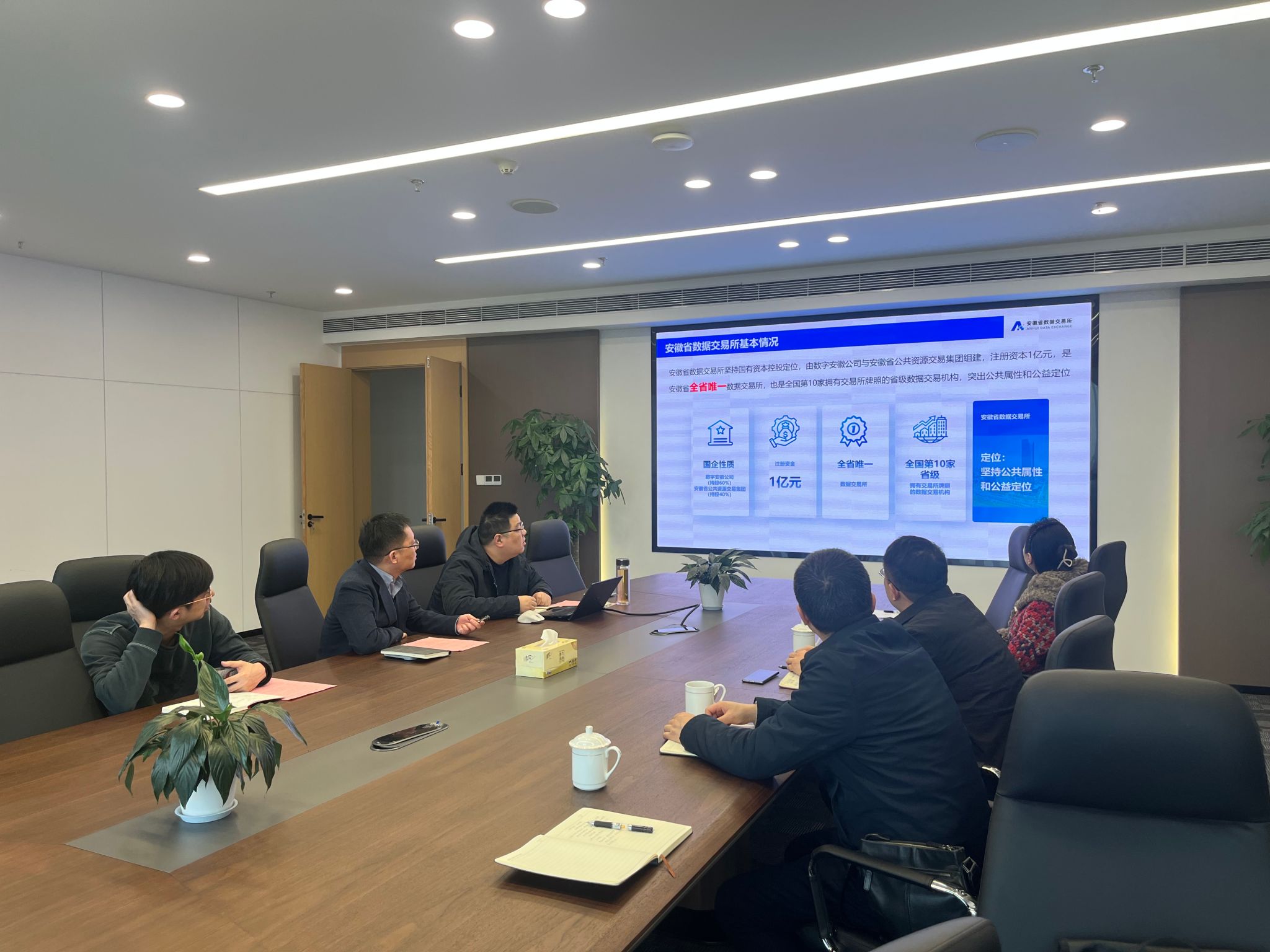 12月4日下午,太阳集团tyc33455院长李晓翔、钟玉文,经济学系教师刘璇和刘经涛等一行前往安徽省数据交易所进行实地调研,并与安徽省数据交易所相关负责人开展座谈。