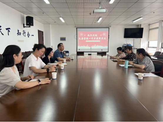 本网讯 5月18日下午,太原学院管理系主任张卫东、市场营销教研室主任王霞及市场营销专业骨干教师等一行4人来我院进行调研交流,副院长黄虹、市场营销系主任姚垚及专业骨干教师热情接待了张卫东一行,双方进行了深入友好的座谈交流。