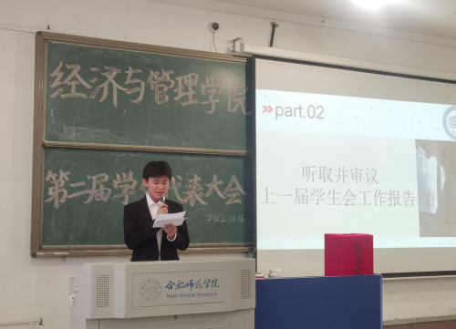 大会期间,全体代表听取了第十七届学生会执行主席王成龙所作的《踔厉奋进新征程,勇毅前行展未来》工作报告。报告回顾了第一次学生代表大会以来院学生会工作取得的进展和成果,分析了推进学生会改革的思路和方向,提出了下一阶段工作的设想和建议。