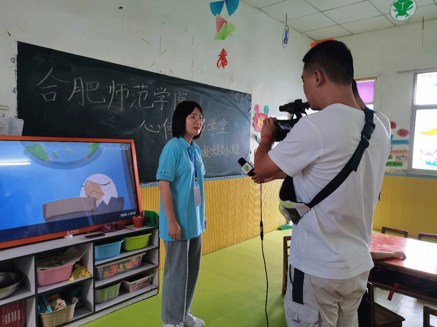 本网讯 今年暑期,我院大学生志愿者深入全国各地开办行知学堂,为各地小学生带来新颖趣味课堂的同时,还做到关爱留守儿童、自闭症儿童,产生了良好的社会影响。安徽省宣城市泾县本土媒体《泾县发布》对“心传“行知学堂活动开展情况进行了拍摄报道,并在泾县丁桥李元幼儿园现场采访了行知学堂小先生们。7月20日晚在泾县每日新闻中播出了采访内容。