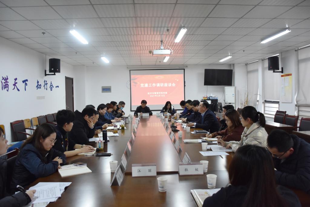 3月19日下午,院党委书记徐成钢、副书记吴昕春在组织部部长华银锋等陪同下,深入太阳集团tyc33455开展基层党建工作调研。经管学院党政班子成员、组织员、党支部书记、科级干部、党政秘书及党员教师代表参加调研座谈。