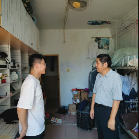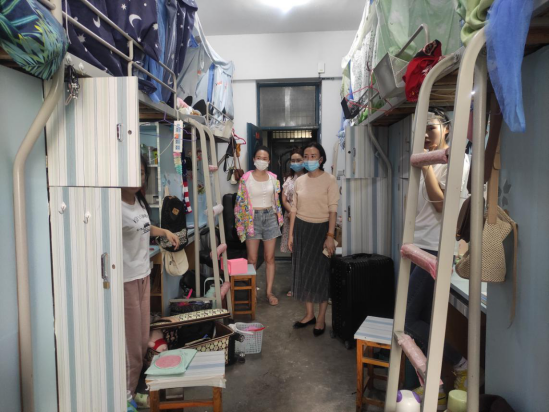 深入宿舍,走访回校学生。经管院党委书记沈辉、副书记陶敏分别深入三孝口和锦绣校区学生宿舍,查看宿舍环境,慰问返校学生,询问学生生活方面有无困难,要求同学们尽快适应新学期的学习并做好规划。沈辉书记在和三孝口返校同学交谈中,希望同学们由于老旧小区改造对校园环境造成的影响给与理解和支持。