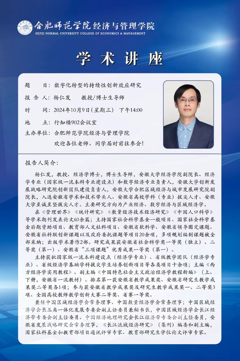 学术讲座:数字化转型的持续性创新效应研究