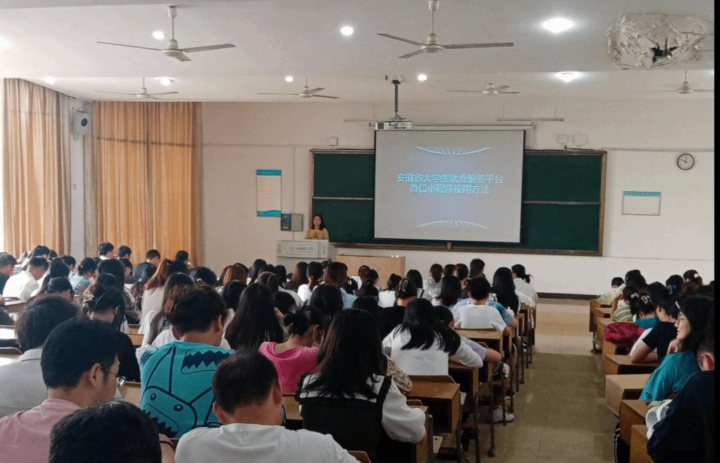 本次班会采取PPT与现场演示的方式,对安徽省大学生就业服务平台微信小程序的使用方法进行解说。对生源信息的维护、学生信息完善、就业信息维护、网签操作流程及注意事项进行了详细的解释说明,对于学生们的疑问进行了现场解答。