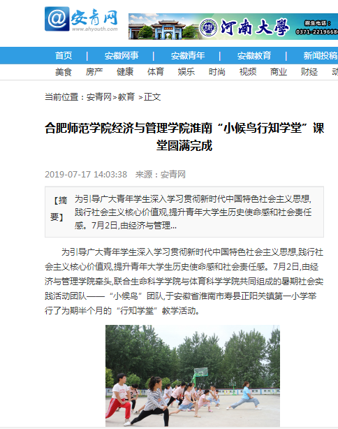 7月17日,安青网报道我院“小候鸟”行知学堂实践活动。(太阳集团tyc33455)