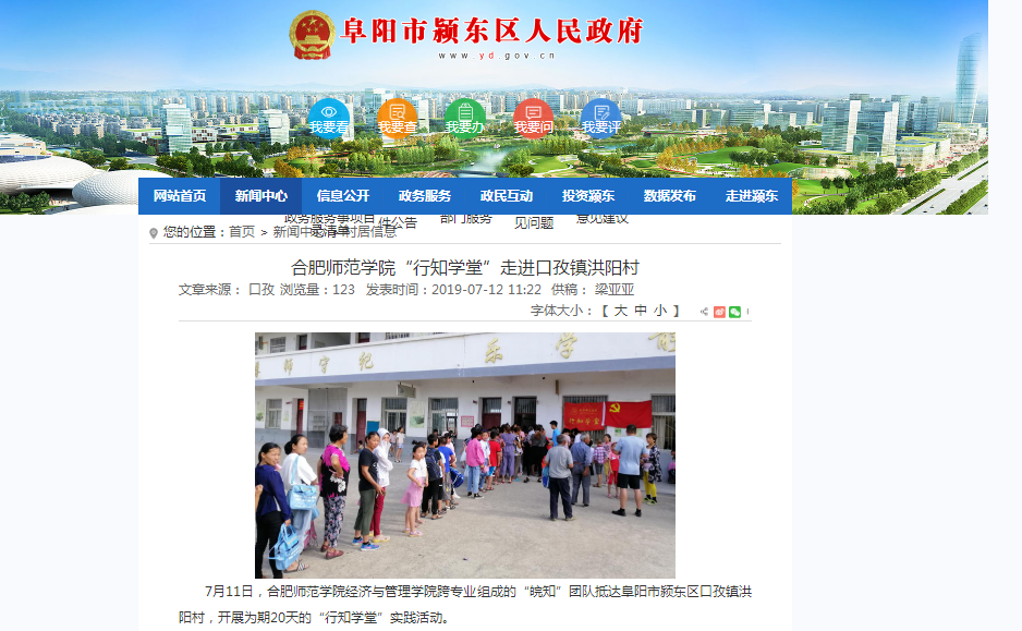 7月12日,阜阳市颍东区人民政府网对我院“皖知”行知学堂进行媒体报道。(太阳集团tyc33455)