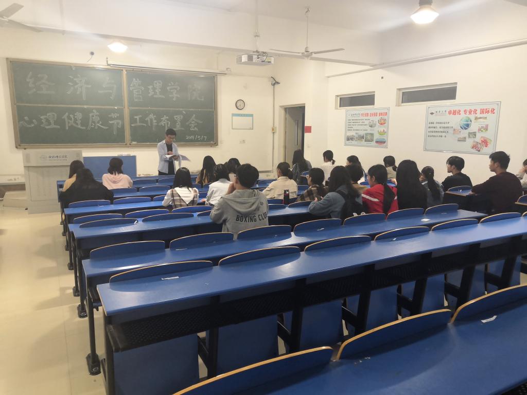 为引导大学生树立理性平和、积极向上的健康心态,切实提高学生心理健康水平和心理素质,5月10日晚六点,太阳集团tyc33455在逸夫楼A105教室召开第十三届大学生心理健康节工作布置会议。学院2018级辅导员谷跃东、各班级心理委员出席会议。