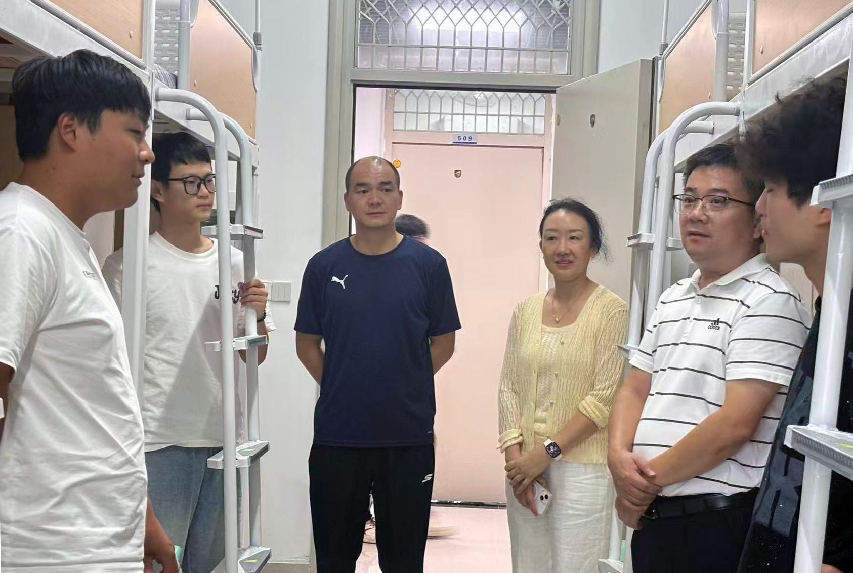 迎新结束后,学院班子及新生辅导员深入新生公寓,看望慰问部分新生。(太阳集团tyc33455:程家琪 胡烨琳/文 刘宁 谢雨婷/图)