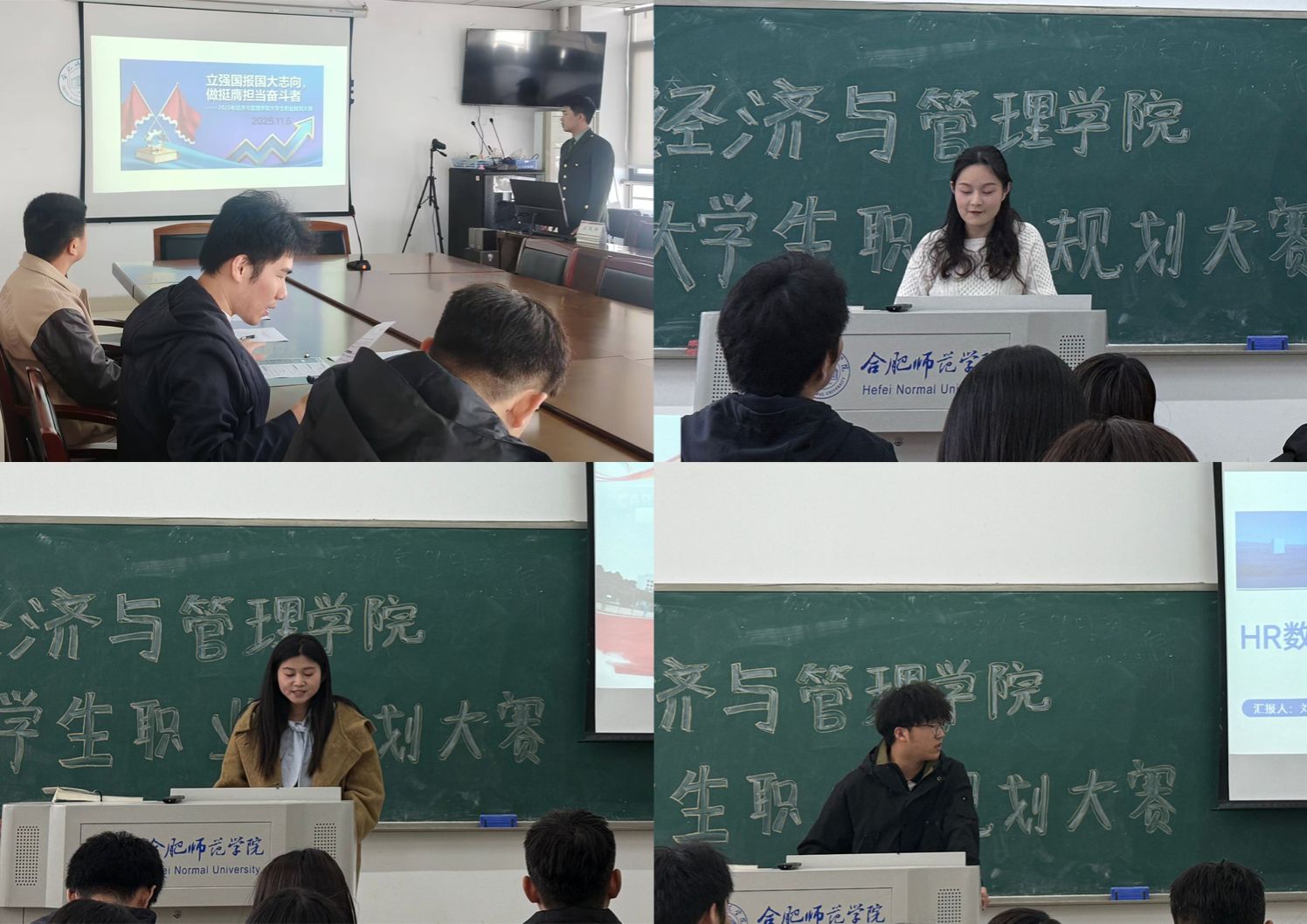 11月4日至5日,太阳集团tyc334552025年大学生职业规划大赛分别在滨湖校区和锦绣校区举行。学院党委副书记陶敏,专职辅导员高劲成、徐文、黄翔、王梦凡等老师担任本次比赛评委。