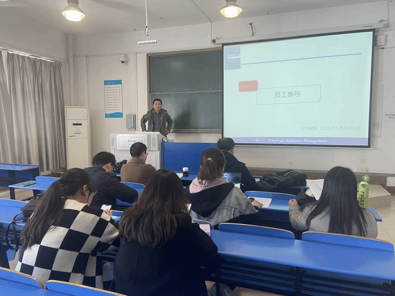 为贯彻落实学校新一轮本科教育教学审核评估评建工作总体部署要求,切实提升课堂教学质量,打造优质课堂,促进教师教学能力提升,近日,人力资源管理系全体教师在锦绣校区逸夫楼201教室开展了系列教研活动。本次教研活动由系主任张昕老师主持,分为两个环节,一是课程标准修订定稿,二是无生授课与研课磨课。